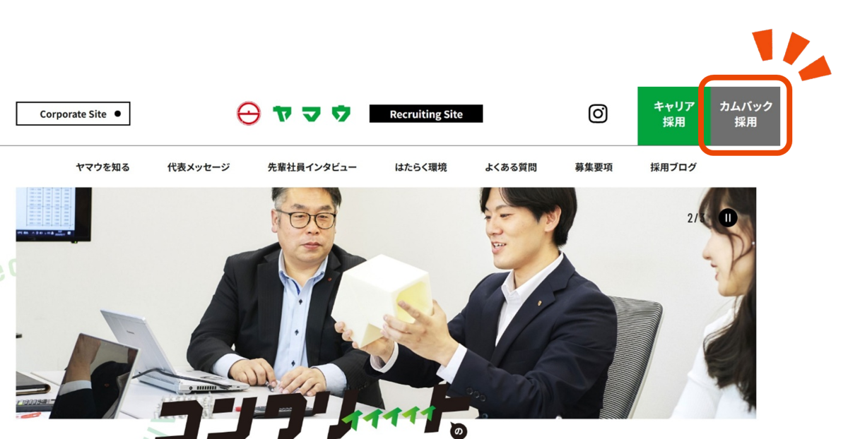 カムバック制度とは、ヤマウを退職された方や内定を辞退された方に専用システムへご登録いただき、ヤマウの採用情報や取り組みを継続的にお届けする制度です。